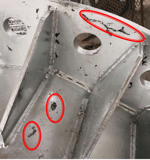 6.工件出鋅鍋后入水太快,鋅液未完全流盡,凝結于表面。